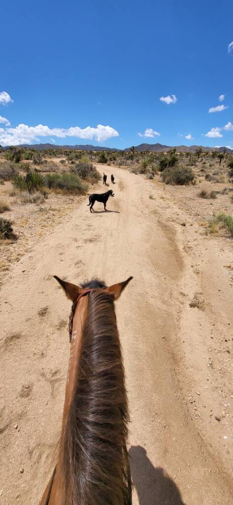 He and Laura keep their horses at the Yucca Valley Equestrian Center, near their home. Nearby Joshua Tree provides plenty of trail riding options, some of them accessible directly from the boarding facility. Their three dogs often come along – “running around chasing lizards, rabbits and who knows what.”